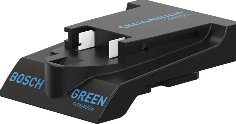 Scangripin CONNECTOR-adapteri, joka mahdollistaa Bosch Green-sarjan 18V/20V-akkujen yhdistämisen Scangripin CONNECT-sarjan työvalaisimiin. Scangrip on kehittänyt oman adapterin jokaiselle suuremmalle tuotemerkille mahdollistaen tuotemerkin 18V/20V-akkujen yhdistämisen Scangripin CONNECT-sarjan työvalaisimiin.