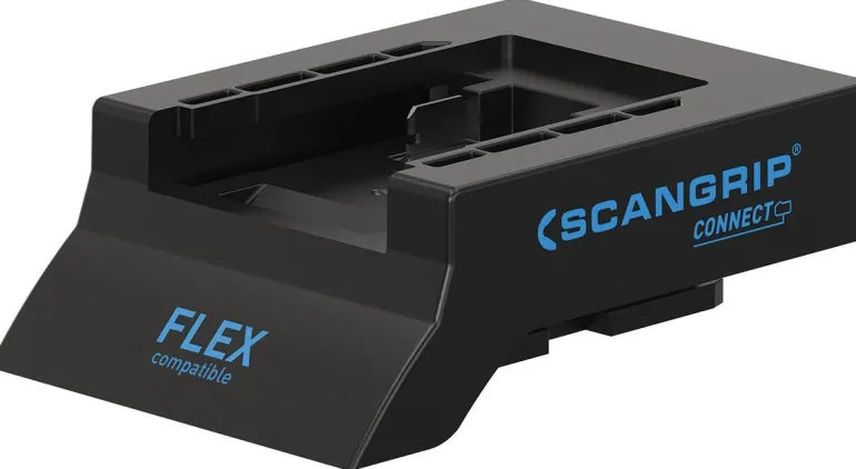 Scangripin CONNECTOR-adapteri, joka mahdollistaa Flexin 18V/20V-akkujen yhdistämisen Scangripin CONNECT-sarjan työvalaisimiin. Scangrip on kehittänyt oman adapterin jokaiselle suuremmalle tuotemerkille mahdollistaen tuotemerkin 18V/20V-akkujen yhdistämisen Scangripin CONNECT-sarjan työvalaisimiin.