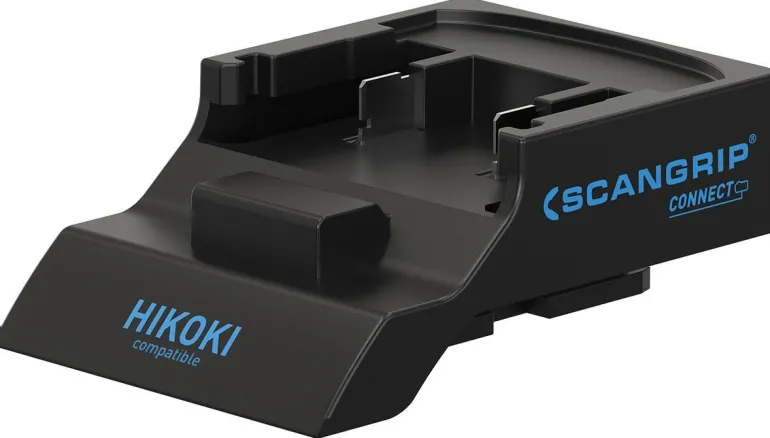 Scangripin CONNECTOR-adapteri, joka mahdollistaa HiKOKin 18V/20V-akkujen yhdistämisen Scangripin CONNECT-sarjan työvalaisimiin. Scangrip on kehittänyt oman adapterin jokaiselle suuremmalle tuotemerkille mahdollistaen tuotemerkin 18V/20V-akkujen yhdistämisen Scangripin CONNECT-sarjan työvalaisimiin.