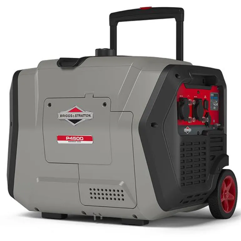 Briggs & Stratton P4500 on aggregaatti, jonka melutaso on matalampi kuin perinteisillä kenttäaggregaateilla. P4500 on vaaraton myös herkille laitteille, kuten älypuhelimille, kannettaville tietokoneille, TV-sovelluksille ja pelijärjestelmille. Tämä liikkuva aggregaatti voi toimittaa laitteistollesi virtaa yhtäjaksoisesti 16 tunnin ajan (25 %:n kuormituksella), jolloin käynnistysteho on 4 500 W ja jatkuva teho 3 700 W. Aggregaatti on bensiinikäyttöinen ja käynnistyy kätevästi painikkeella tai kauko-ohjaimella. Mallissa on integroidut pyörät ja teleskooppikahva, jotka helpottavat kuljetusta. Hiljainen teknologia vähentää melutasoa, polttoaineenkulutusta ja päästöjä entistäkin enemmän. P4500:ssa on nelitahtimoottori, jonka sylinteritilavuus on 224 cm3. Moottori sammuttaa itsensä automaattisesti, jos öljytaso putoaa alhaiseksi.