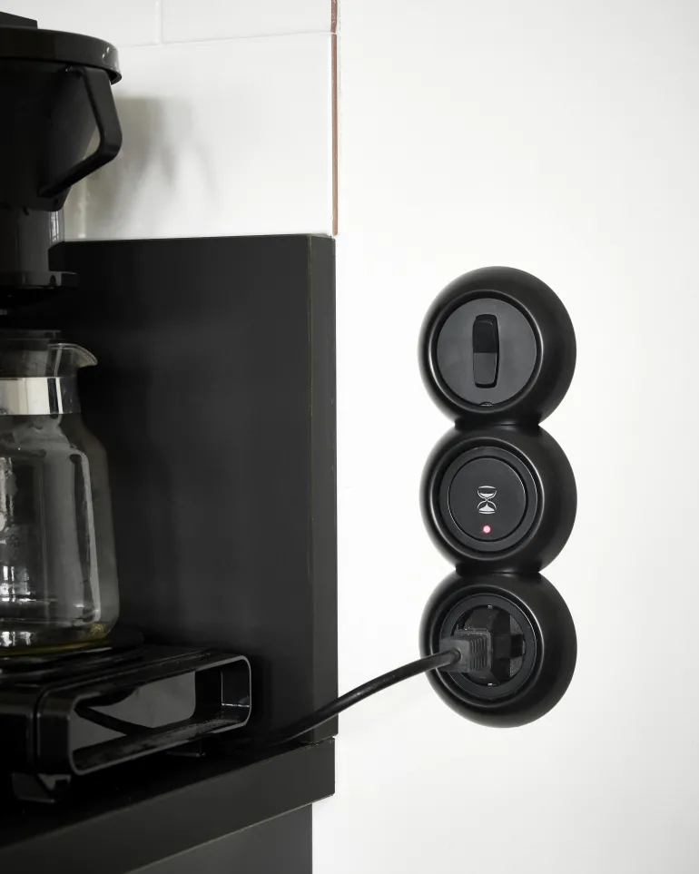 2-napainen elektroninen 10 A:n ajastin, joka voidaan säätää välillä 15/30 min ja 1, 2, 4 ja 8 tuntia. Vaatii nollajohtimen ja kiinnitetään ruuvilla.