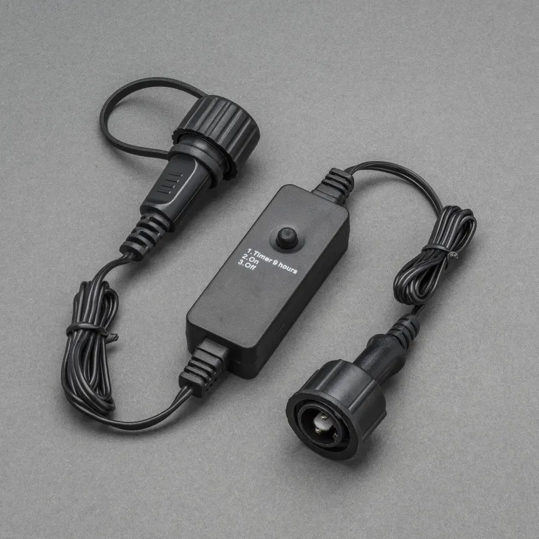 Konstsmide 3607-017 on ajastin 9 h. Sopii ulkokäyttöön. Musta pehmeä johto. DC, 24 V/IP44.