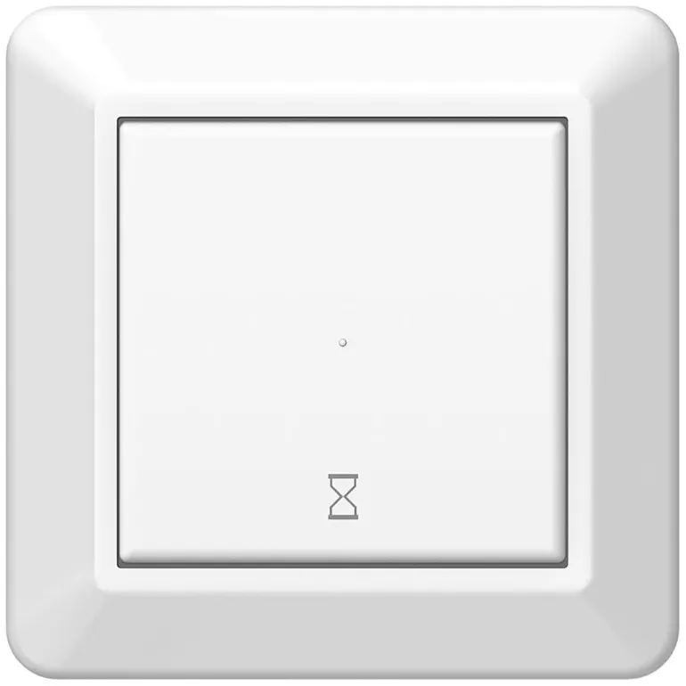 Elektroninen ajastin (10A) painikkeella, jonka viivettä voidaan säätää välillä 5min – 8h (oletusarvona 5min). Tuotteessa on sisäänrakennettu painike, mutta myös mahdollisuus ohjata ulkoisella painikkeella. Uppoasennettavaksi kojerasiaan.