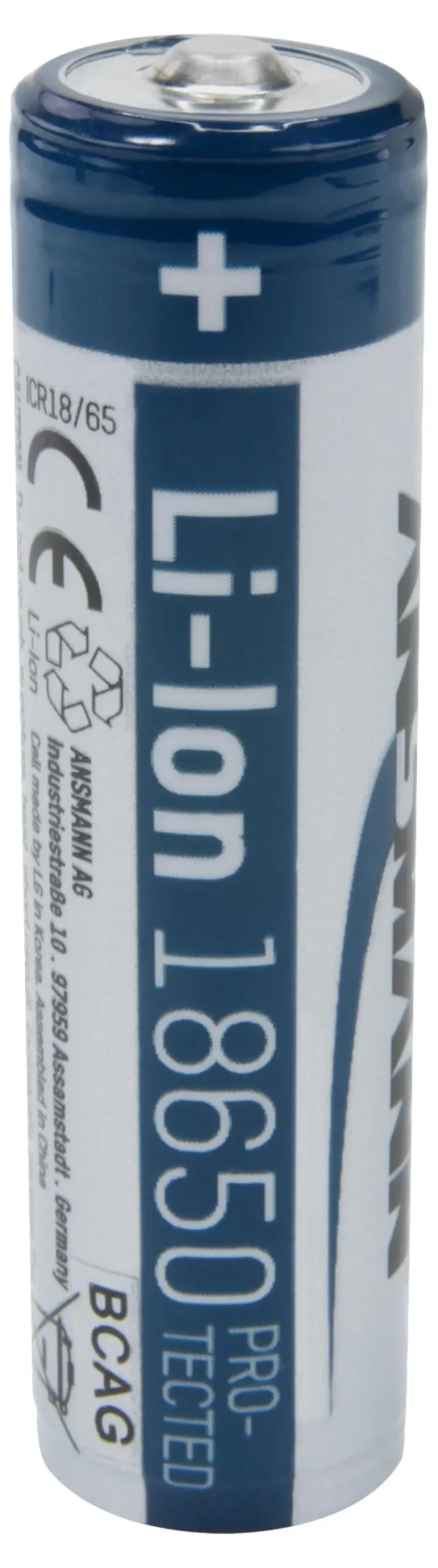18650 ladattava litiumionakku-3,6 V / Typ 3500 (min. 3350 mAh) / 12,6. Wh-akku suojatulla turvapiirillä.