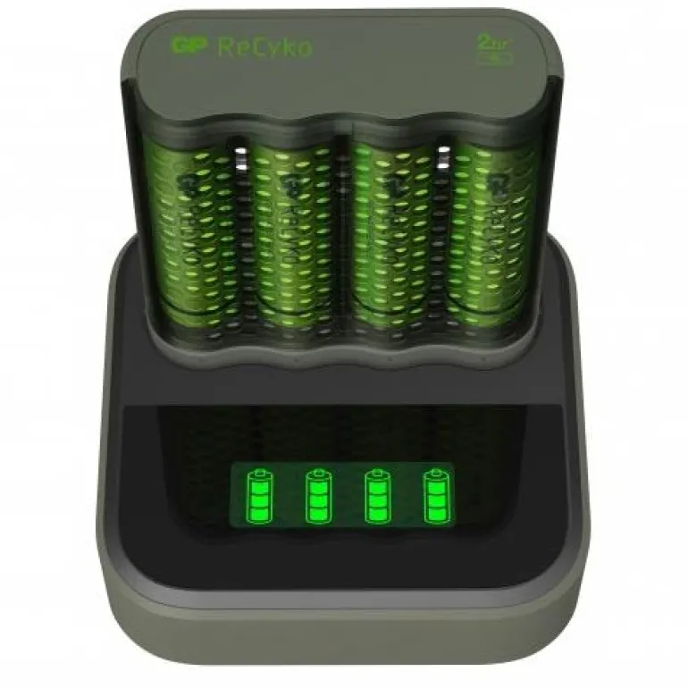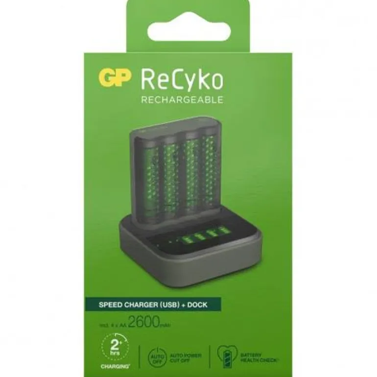 GP Batteries ReCyko Speed M451 on nopea akkulaturi USB-liitännällä, D.C 5V/1A-tulolla ja 1,4 V:n lähdöllä. Laturissa on älykkäät turvallisuus- ja tekniset ominaisuudet, jotka voivat ladata jopa neljä AA- tai AAA-paristoa samanaikaisesti. Rei’itetyn suojansa ansiosta ReCyko Speed M451-latauslaite toimii myös tyylikkäänä akkukotelona, joka pitää akut suojattuna kotona tai tien päällä. ReCyko Speed M451:ssä on neljä 2600 mAh:n ladattavaa AA-paristoa sekä latausasema, joka tarjoaa tärkeitä akkutietoja, jotka tekevät lataamisesta helpompaa kuin koskaan.