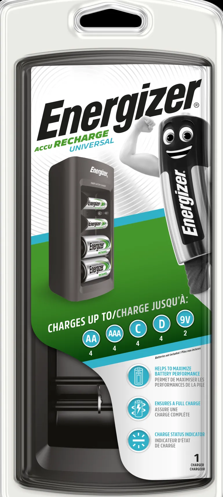 Energizer Accu Recharge on yleislaturi, joka lataa viisi eri paristotyyppiä: AA, AAA, C, D ja 9 V. Laturi on suunniteltu niin, että on helppo nähdä, milloin paristot on ladattu täyteen. Accu Recharge tarjoaa nopean ja turvallisen latauksen 3-5 tunnissa.