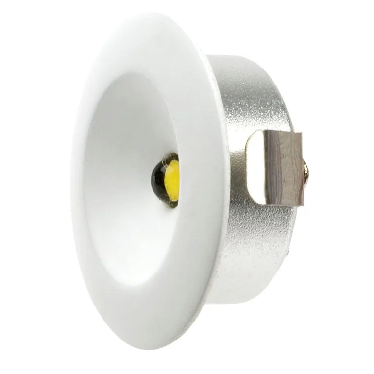 Designlight Q-33MW on valkoinen, pienempi 1,2 W alasvalo, jonka halkaisija on 32,5 mm ja joka tarjoaa alhaisen energiankulutuksen ja pitkän käyttöiän. Sopii hyvin kohdevalaistukseen, avauskulma 105°, valovirta 105 lm ja värilämpötila 2700K.