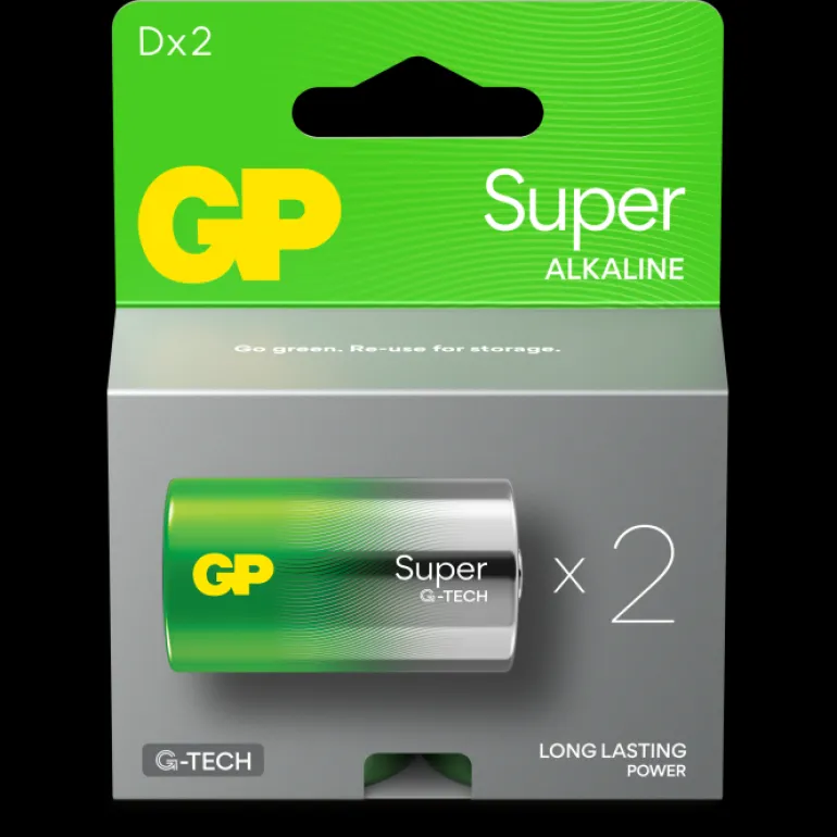 GP PowerBank Super Alkaline 13A/LR20 ovat 1,5 V:n D-alkaliparistoja, jotka soveltuvat paljon paristoja kuluttaville kotitalouksille. Soveltuu useimpiin tuotteisiin, joiden tehonkulutus on keskitasosta korkeaan. Esimerkiksi lelut, seinäkellot, taskulamput jne. Toimitetaan 2 kpl pakkauksessa.