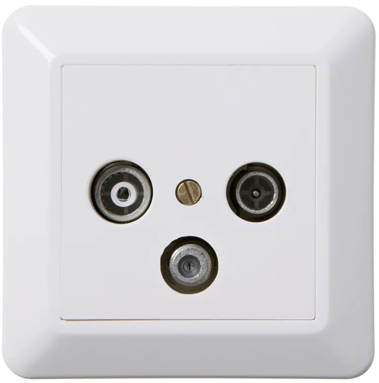 Antennipistorasia, GS MM 8dB, RS. Täydellinen radio-/TV- ja multimediapistorasia galvaanisesti erotetuilla liitännöillä, joiden portit on erotettu toisistaan, mikä parantaa ihmisten ja kytkettyjen laitteiden turvallisuutta.