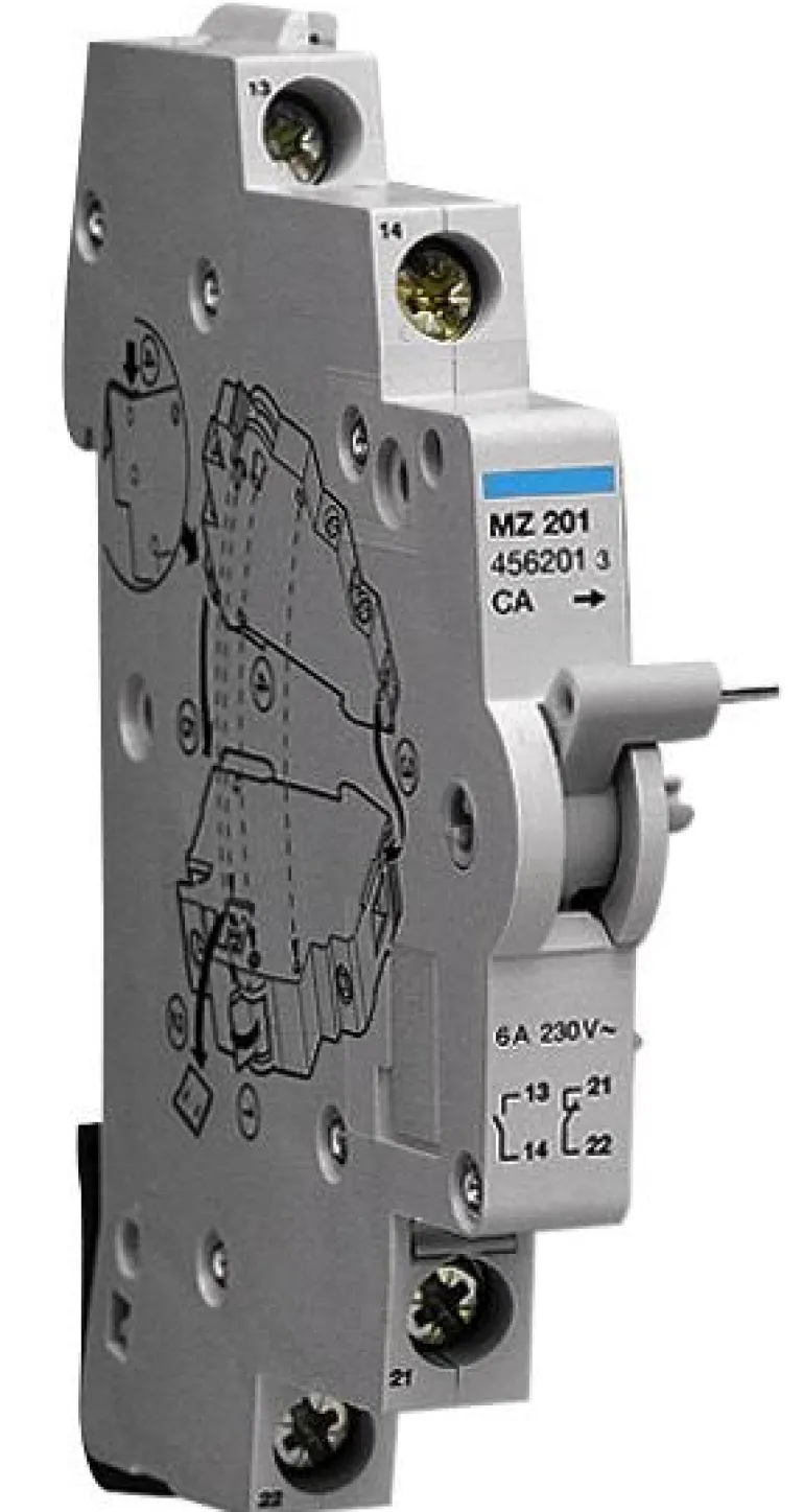 Johdonsuojakatkaisimiin ja vikavirtasuojiin. Tila vaihtuu oikosulun sattuessa.