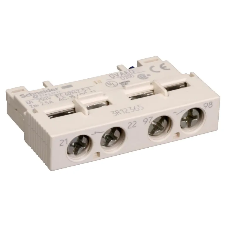Schneider Electric GVAED011 apukosketinlohko, TeSys GV3, 1 sulkeva + 1 katkaiseva, etuasennus. Enintään 1 etuosaan asennettava ja 2 sivulle asennettavaa lohkoa GV-kytkintä kohden.