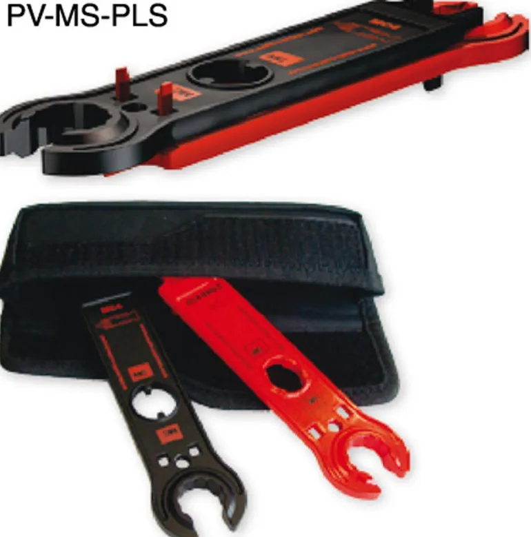 PV-MS-PLS on muovinen asennusavainsarja MC4:lle (PV-4 mm). Sarja sisältää kaksi asennusavainta kaapelitiivisteen asentamiseen ja poistamiseen sekä lukituslaitteen avaamiseen.