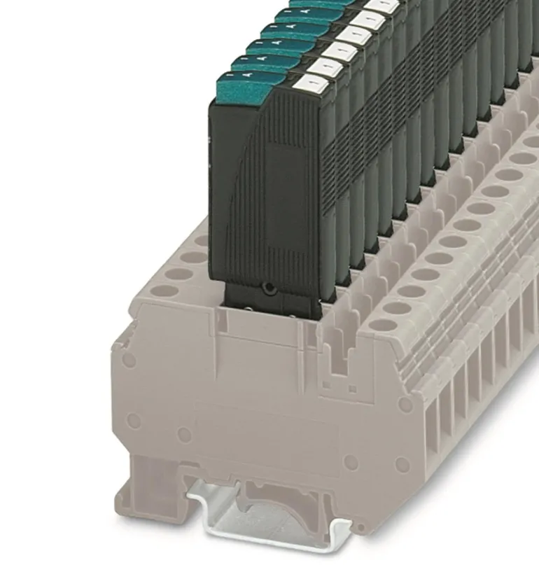 Musta terminen automaattisulake, jonka nimellisjännite on 250 V ja leveys 8,2 mm. Sulake on hidas ja automaattinen ja se asennetaan perusosaan.