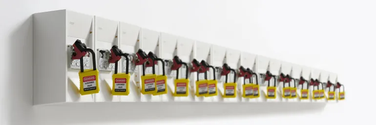 Gylling Lockout -tiimisetti on täydellinen sarja sähköasentajille, jotka työskentelevät kahden ryhmissä. Turvallisuuspakkauksen sisältö: 3 johdonsuojakatkaisijan lukituslaitetta, 2 sähköä johtamatonta riippulukkoa, 1 lukkohaka, 10 varoitusetikettiä ja 10 nauhaa punaiseen laukkuun pakattuna.