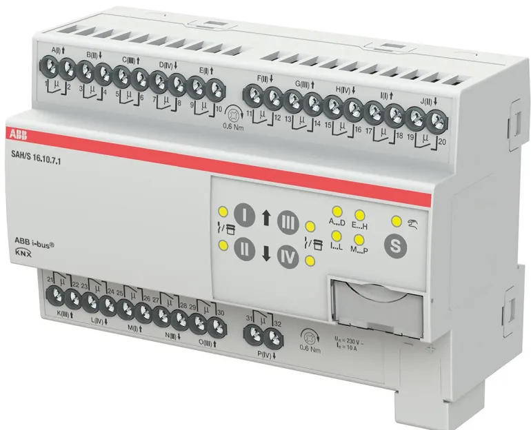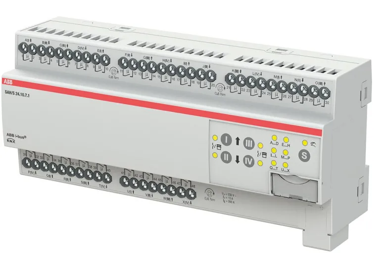 Kompaktissa combi-kytkinyksikössä on 8, 16 tai 24 itsenäistä lähtöä (ei sähkömekaanisesti kytketty). Lähtöjä voidaan käyttää yksittäin ABB i-bus KNX:n kautta sähkökuormien kytkemiseen tai pareittain 230 V AC:n kaihtimien tai markiisien ohjaamiseen. Laitteessa on manuaalinen ohjaus, joka voidaan myös deaktivoida. Manuaalisella käytöllä lähdöt voidaan ajaa manuaalisesti ja vaihdon tai ajon tila tulee näkyviin. Laite saa käyttövoimansa väyläjännitteestä eikä vaadi lisävirtalähdettä.