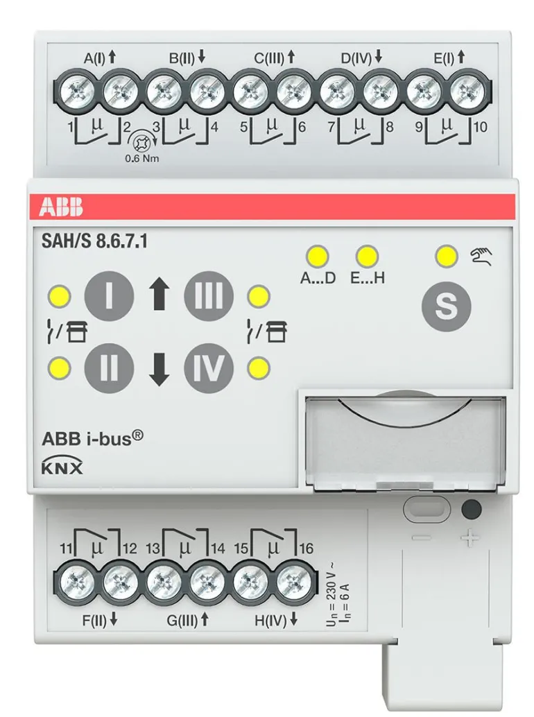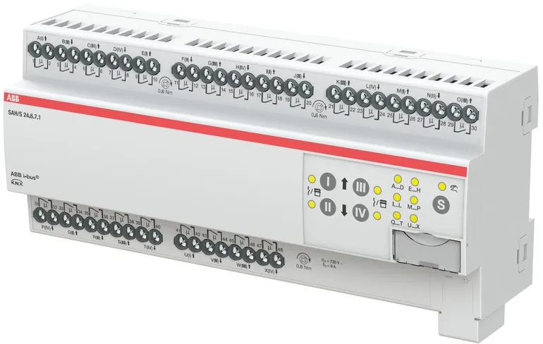 Kompaktissa combi-kytkinyksikössä on itsenäisiä lähtöjä (ei sähkömekaanisesti kytketty). Lähtöjä voidaan käyttää yksittäin ABB i-bus KNX:n kautta sähkökuormien kytkemiseen tai pareittain 230 V AC:n kaihtimien tai markiisien ohjaamiseen. Laitteessa on manuaalinen ohjaus, joka voidaan myös deaktivoida. Manuaalisella käytöllä lähdöt voidaan ajaa manuaalisesti ja vaihdon tai ajon tila tulee näkyviin. Laite saa käyttövoimansa väyläjännitteestä eikä vaadi lisävirtalähdettä.