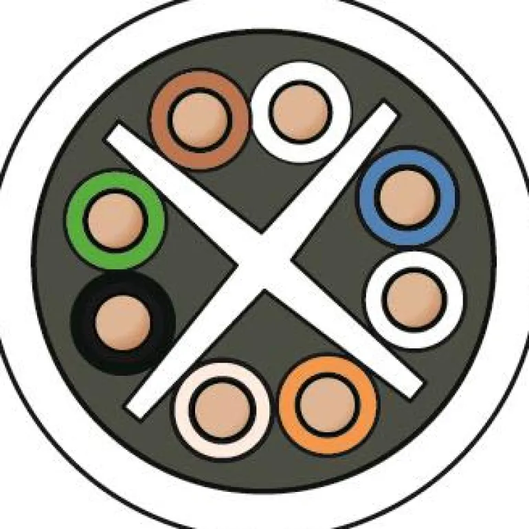 Suojaamaton Kat6 U/UTP -datakaapeli 4xAWG24 (250 MHz) sisäkäyttöön. Valkoinen halogeeniton vaippa, jossa metriasteikko. Muovinen ristikko parien erottamiseen. Hyvä taivutussäde, 3 x halkaisija (normaalisti 4 x halkaisija).