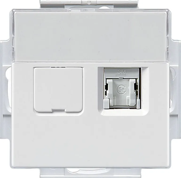 Datapistoke jossa 2xRJ45-moduulipistorasia, Cat6 UTP, valkoinen. Peitelevy ei sisälly toimitukseen.