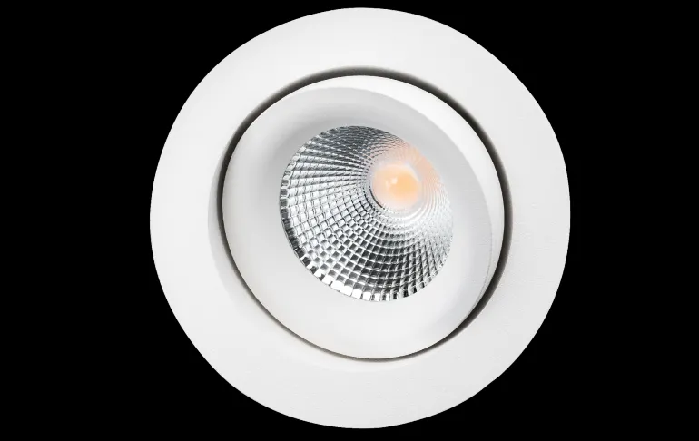Valkoinen 7 W:n syväsäteilyvalaisin, jossa on CoB Holder -kanta. Harmoninen, välkkymätön valo ja erinomainen värintoisto, värilämpötila 3000K. Patentoitu ratkaisu, jossa 30°:n saumaton säädettävyys kaikkiin suuntiin, portaaton 360°:n kallistus. Syväsäteilyvalaisin on IsoSafe-tuote, joten se voidaan asentaa suoraan eristeeseen.