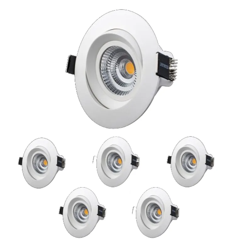 Kallistettava syvävirtausvalaisin, jonka valovirta värilämpötila järjestelmäteho on 7 W ja nimellisjännite 230 V. Asennus voidaan suorittaa suoraan eristystä vasten.