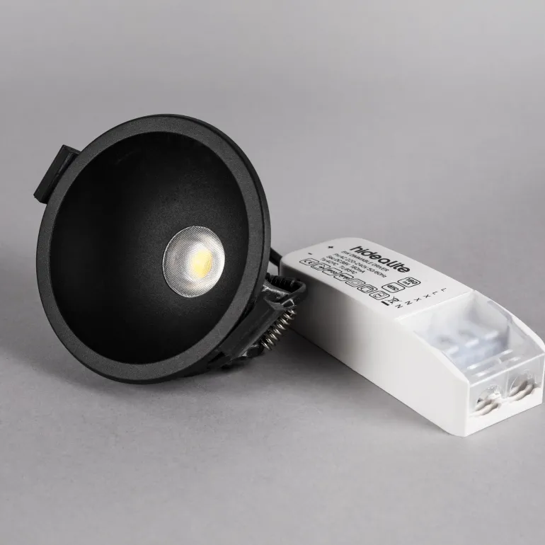 Hide-a-lite Globe G2 Recessed on musta 8 W: n alasvalo, 660 luumenia, värilämpötila 3000 K ja IP 44 -luokitus. Eksklusiivinen alasvalo modernilla muotoilulla ja kulhon muotoisella heijastimella. Korkea valovirta, syvälle sjoitettu valonlähde antaa häikäisemättömän valon. Valaisimen ulkonäköä voidaan parantaa erivärisillä heijastimilla, jotka sopivat materiaaleihin ja sisustukseen. Globe G2 on ilmeinen valinta sekä koti-, hotelli- että ravintolaympäristöihin.