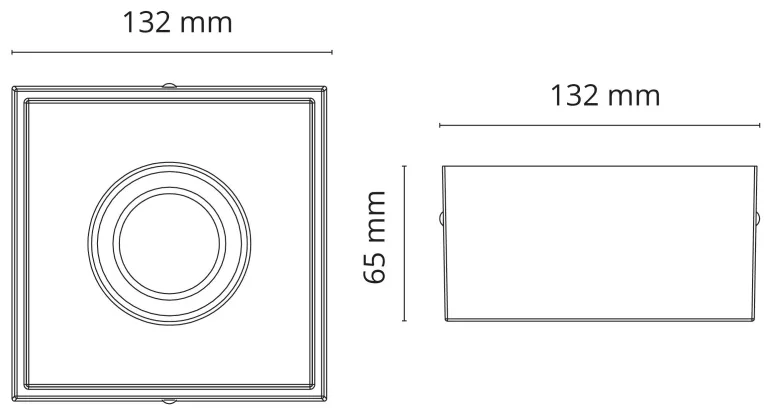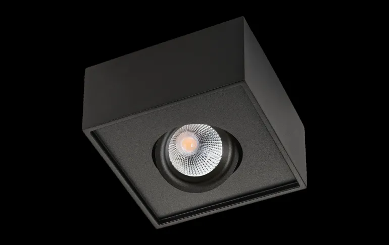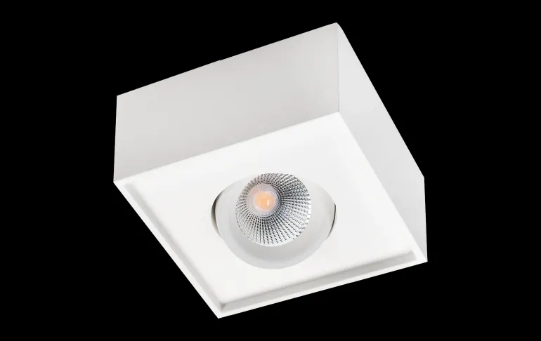 Valkoinen nelikulmainen 7 W:n alasvalo, jonka valovirta on 540 lm. Voidaan asentaa kattoon tai kattorasiaan sisä- tai ulkotiloissa, voidaan suunnata 30° kaikkiin suuntiin, portaaton 360°:n kallistus.