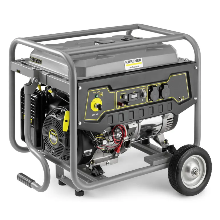 Kärcher PGG 3/1 on kompakti, helposti liikuteltava ja tehokas aggregaatti 2,8 kW teholla. Generaattori soveltuu riippumattomaksi virtalähteeksi esim. rakennustyömaakäyttöön, maatalouteen tai työskentelyyn julkisilla paikoilla. Luotettava 4-tahti-bensiinimoottori mahdollistaa helpon käynnistyksen ja huolettoman käytön. Vakiona ylikuormitussuojaus ja öljymäärän merkkivalo. Vankka putkimainen teräsrunko suojaa käyttäjiä ja konetta luotettavasti kaikilta riskeiltä tai vaurioilta. Laitteen kaksi AC-maadoitettua pistorasiaa on varustettu automaattisella jännitesäätimellä (AVR), joten ne soveltuvat myös herkkien elektronisten laitteiden toimintaan. Maksimissaan jopa 12 tunnin käyttöaika (täydellä kuormalla 6,5 tuntia) kattaa helposti kokonaisen työpäivän. Bensiinisäiliö 15 l.