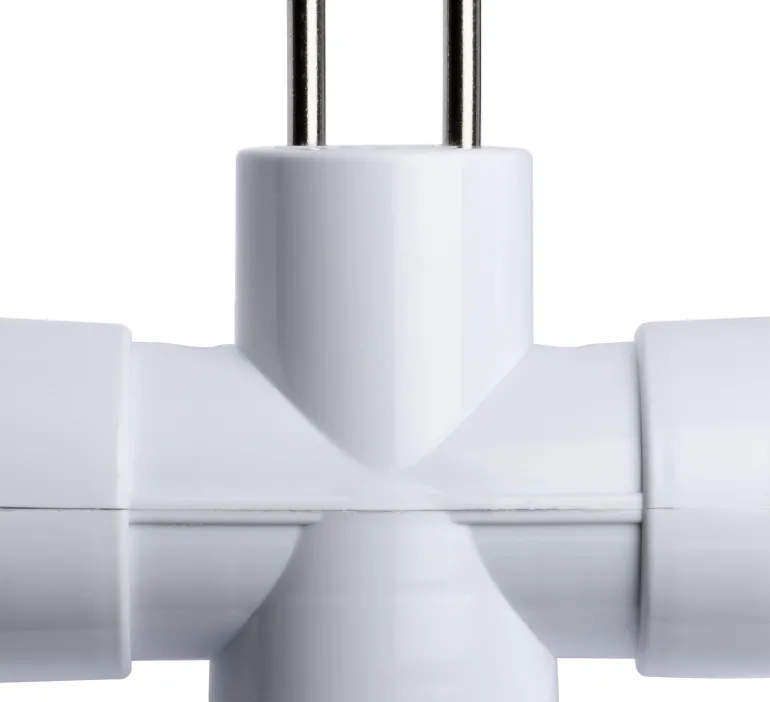 Gelia 80000683 on valkoinen muovista valmistettu haaroitin 3:lla maadoittamattomalla pistorasialla.