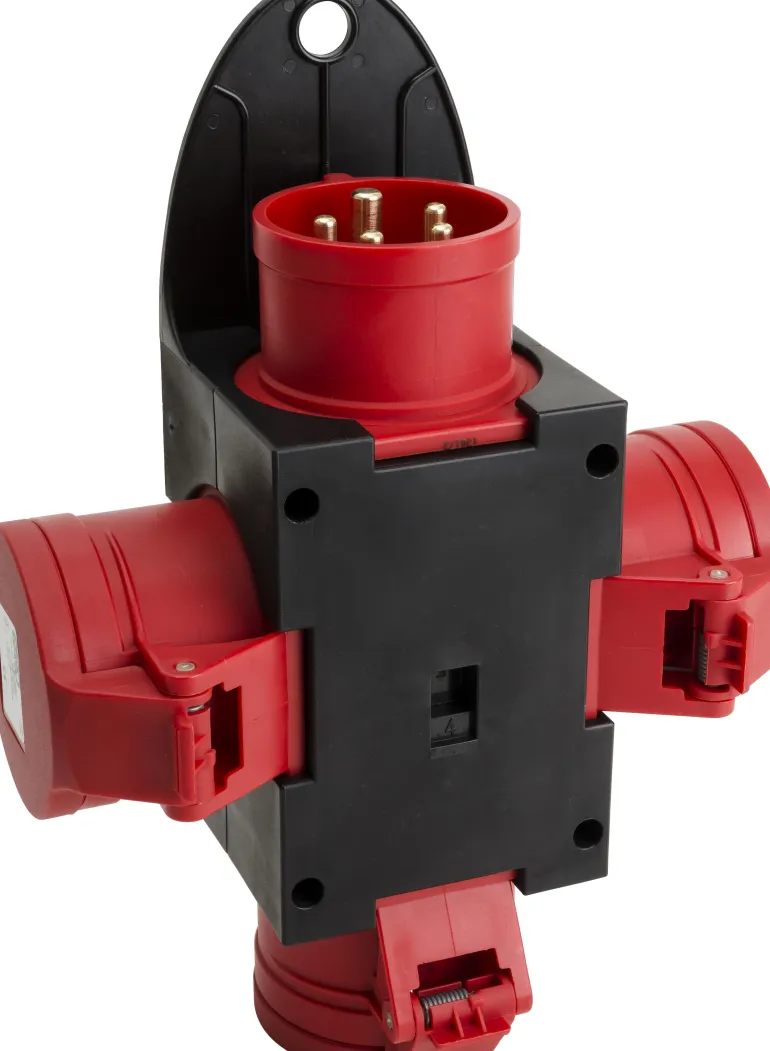 Haaroituspistorasia 3-vaihekäyttöön, jännite 16 A, varustettu tuloliitännällä, joka liitetään suoraan liitospistorasiaan. Pistorasiassa on integroitu ripustussanka, joka suojaa virheelliseltä kytkennältä.