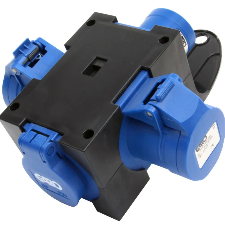 Garo-haaroitusjatkojohto 16 A, joka on varustettu sisääntulolla suoraan jatkopistorasiaan liittämiseksi. Sen integroitu ripustuskannatin toimii myös suojana virheelliseltä kytkennältä. Haaroitusjatkojohto 3-napainen 16 A 1XII 2XUI 1XSCH.
