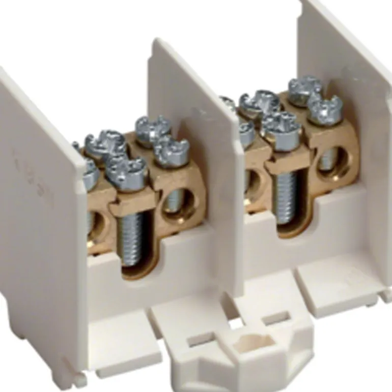 Asennetaan pikakiinnikkeellä DIN-kiskoon. Saapuvat liitännät 2x25mm², lähtevät 4x16mm²
