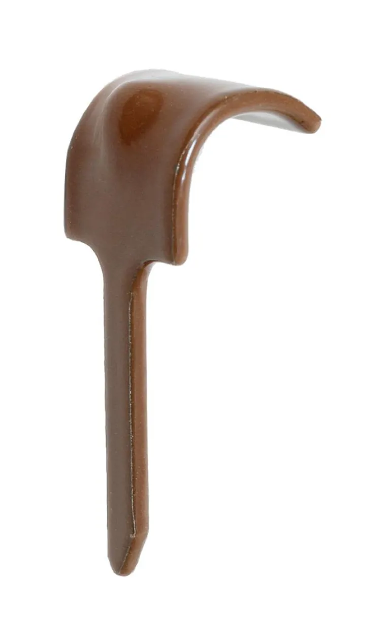 Sähkösinkitty yksijalkainen hakanen kaapelien ja johtimien turvalliseen kiinnittämiseen, Rilsanplast-pinnoite. Rilsanplast on materiaali, joka kestää hyvin mineraalisuoloja, emäksiä, useimpia liuottimia ja orgaanisia happoja