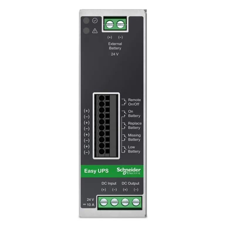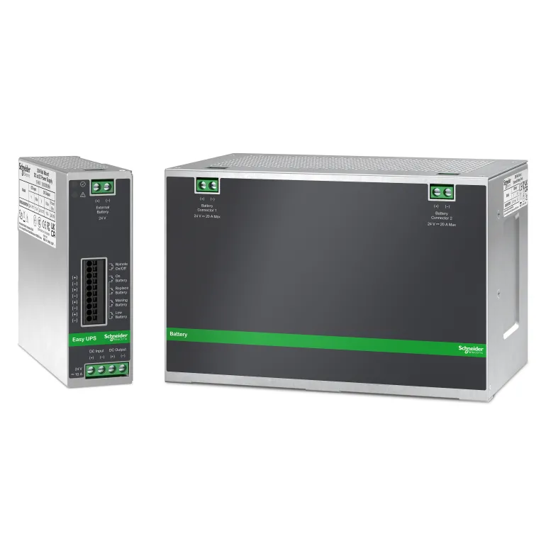 Schneider Electricin Easy DIN UPS 24V DC on osa Schneider Electricin Easy UPS-tuotesarjaa. Malli on teollinen 480W 24V DC UPS, joka asennetaan DIN-kiskolle. Laitetta on saatavana sekä 240 W / 10 A- että 480 W / 20 A-vaihtoehtoina, joihin kumpaankin voidaan liittää enimmillään neljä 4,5 Ah-akkua halutun varakäyntiajan saavuttamiseksi.