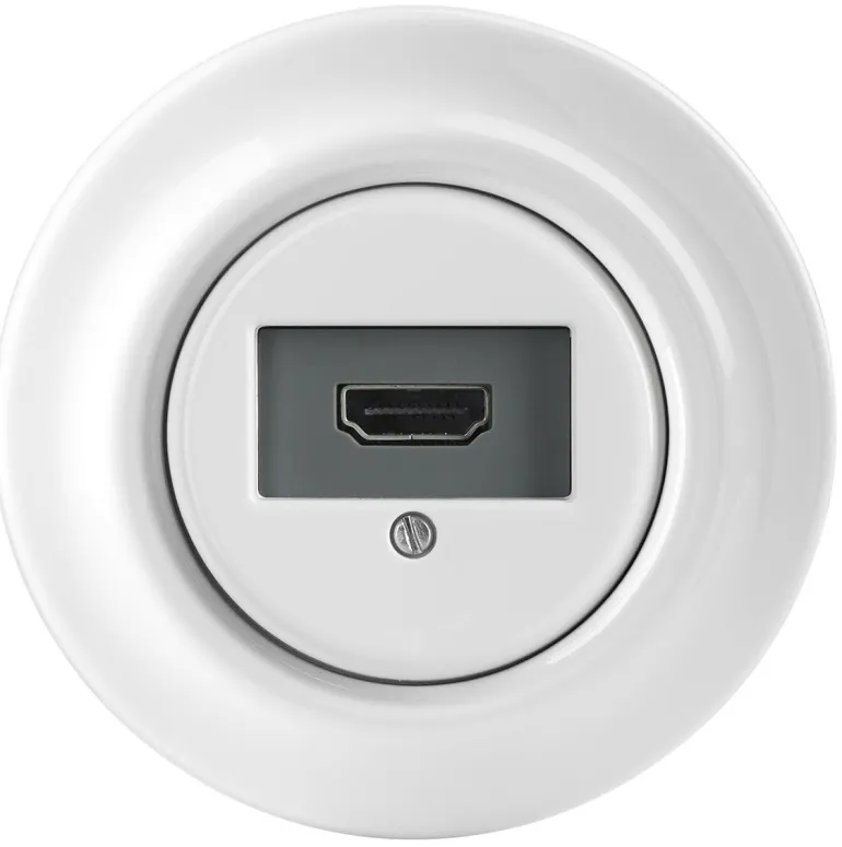 HDMI-liitäntärasia (pistorasia) posliinista. Pikaliitäntä helppoa ja turvallista asentamista varten.