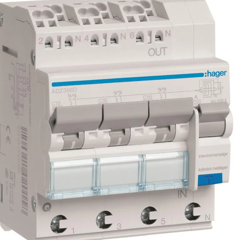 Henkilönsuoja QuickConnect-liitännällä. Henkilönsuoja 3 x 1-napainen + N – ihanteellinen asuntoihin asennettavaksi. Tuote koostuu kolmesta 1-napaisesta johdonsuojakatkaisijasta kolmelle 230 V:n virtapiirille vikavirtakatkaisijalla.