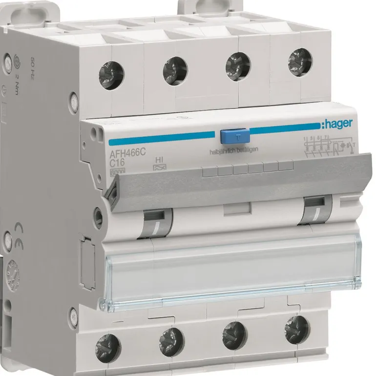 Henkilösuojakytkin 4-napainen, 6kA tyyppi HI. Henkilösuojakytkin on 4-nastainen suoja, jossa on 4-napainen kytkentä. Häiriötön rakenne. Se on vikavirtakatkaisimen ja miniatyyrikatkaisimen yhdistelmä. Kokonapainen ja turvallinen erilaisiin tilanteisiin: laitosten maadoitusvikavirrat, ylikuormitus, oikosulku. Tilaa säästävä (4 moduulia) henkilösuojakytkin soveltuu palo- ja oikosulkusuojaan (3-vaiheiset pistorasiaryhmät). Vaihekiskoliitäntä mahdollistaa useampien henkilösuojakytkimien liittämisen.