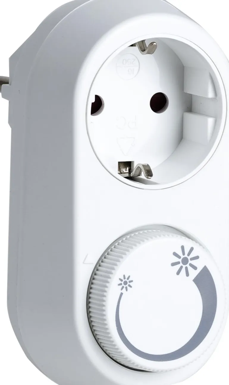 Himmennin takareunaohjauksella. Sijoitetaan seinäpistorasiaan, johon valaisin on kytketty. Hehkulampuille, 230 V halogeenilampuille ja useimmille LED-lampuille (3–24 W). 230 V. Sisäkäyttöön.