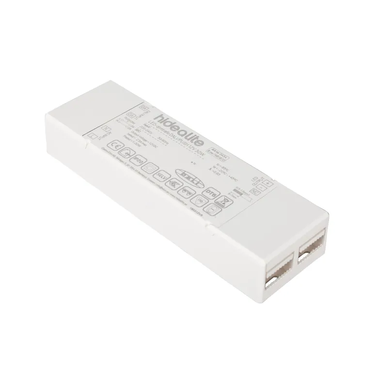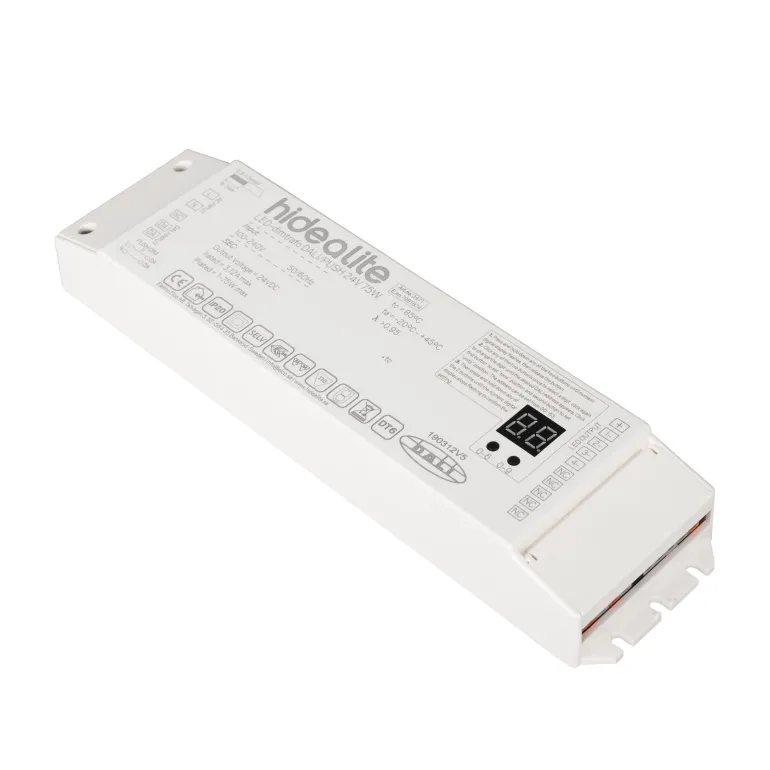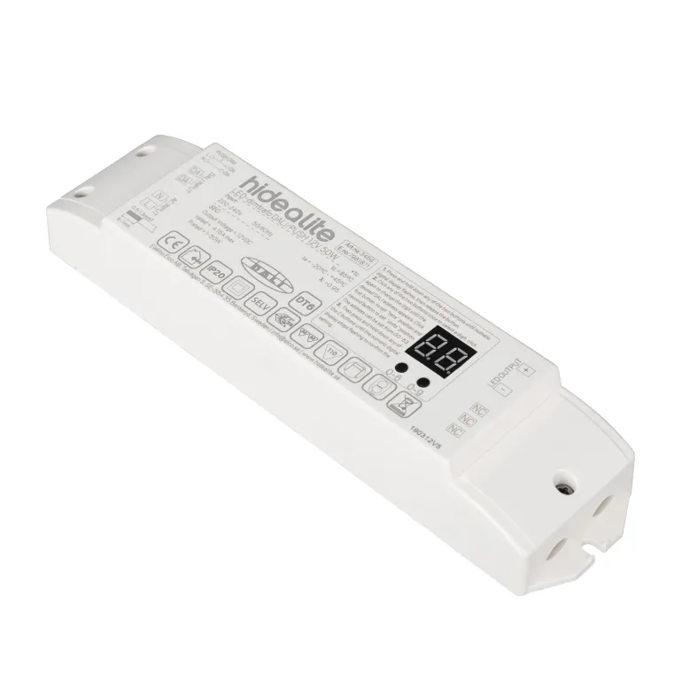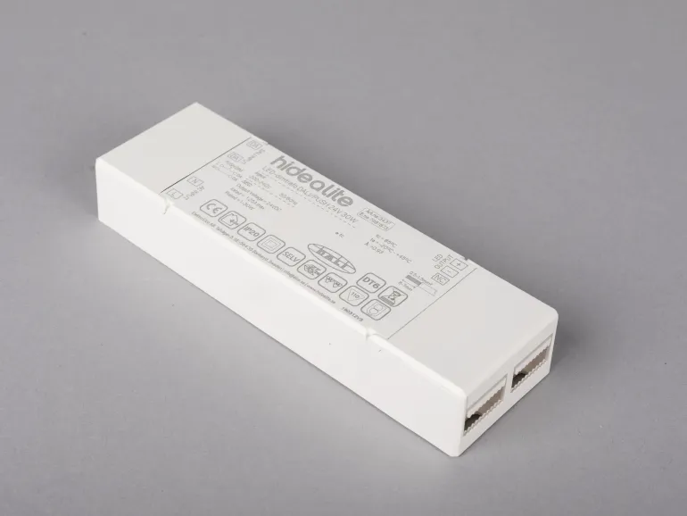 Hide-a-Lite 7981873 on tehokas himmenninmuuntaja 12 V:n tai 24 V:n LED-nauhoille. Täydellinen yksiväristen LED-nauhojen himmennykseen Push-toiminnolla (230 V), voidaan ohjata myös DALI-signaalilla. Muistitoiminto sytyttää sähkökatkon jälkeen viimeksi asetettuihin arvoihin. Koko tehon saa yhteen lähtöön tai sen voi jakaa.