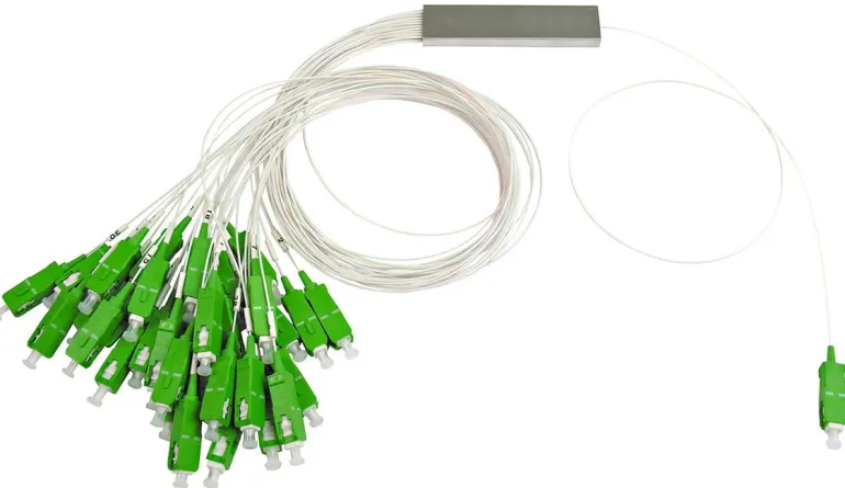 PLC-jakaja, jossa on SC/APC-liitännät optiselle signaalille alueella 1260-1650 nm. Ihanteellinen asennettavaksi rasioihin tai asennuskehikkoihin.