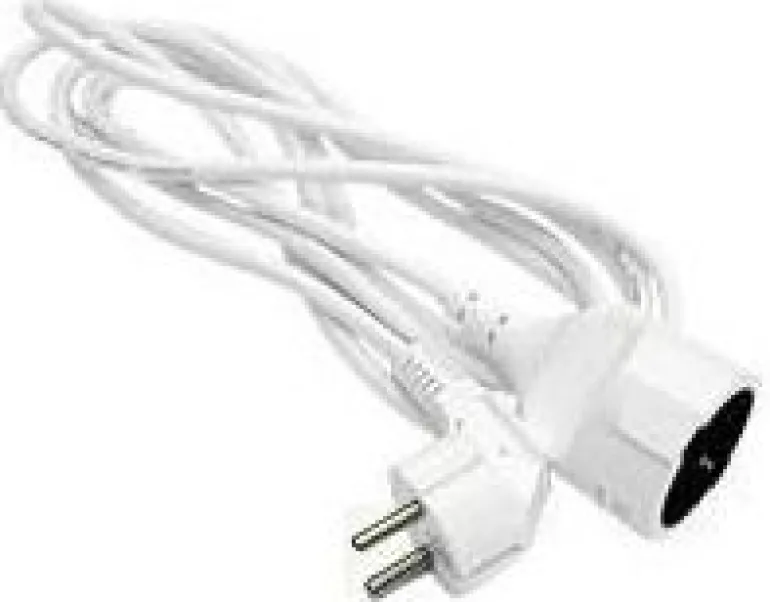 Valkoinen 6 m jatkojohto sisäkäyttöön. Pistotulppa ja jatkopistorasia. Jatkojohto on maadoitettu ja jatkopistorasiassa on kosketussuojaus.