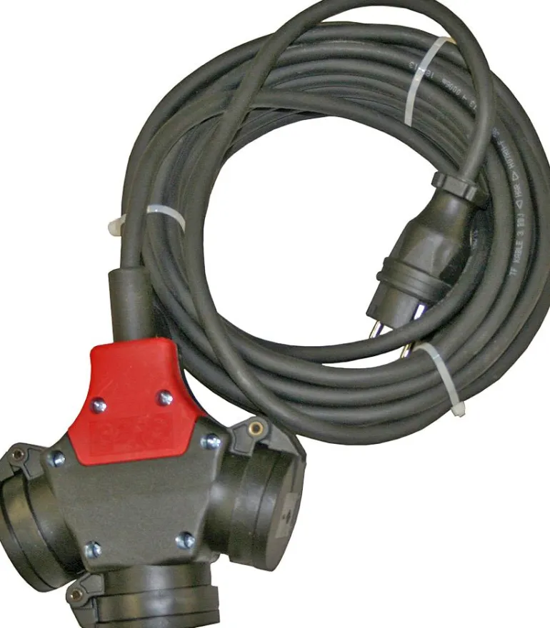16A haaroituspistorasia kaapelilla, joka on valmistettu iskunkestävästä kumi- ja muovimateriaalista kestämään erittäin vaikeita olosuhteita. Varustettu Schuko- tai 16A-pistokkeella, jossa on eri pituiset kaapelit.