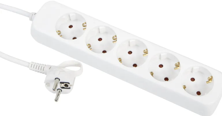 Maadoitettu, 5-osainen jatkojohto. Pistokkeessa kätevä muovisilmukka.