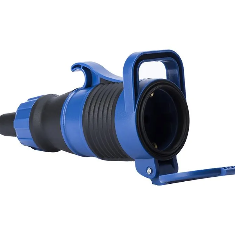 Haaroituspistorasia, hyväksytty ulkokäyttöön IP44-luokituksella. Älykäs lukitustoiminto estää pistotulpan irtoamisen.