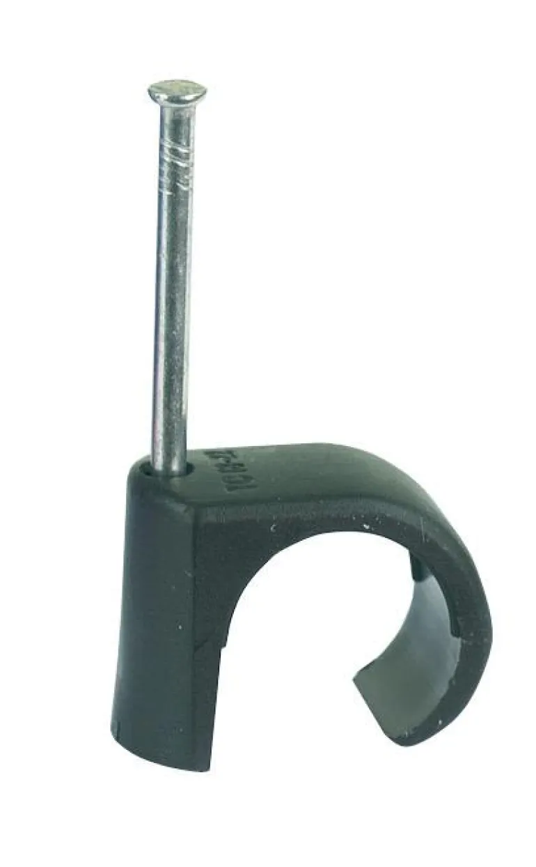 Naulallinen johdonkannatin, jota käytetään kaapeleiden kiinnittämiseen seinälle tai katolle. Toimitetaan 100 kpl:n pakkauksessa.