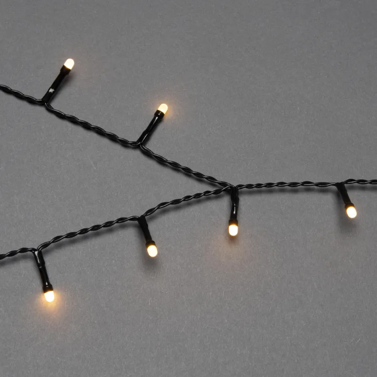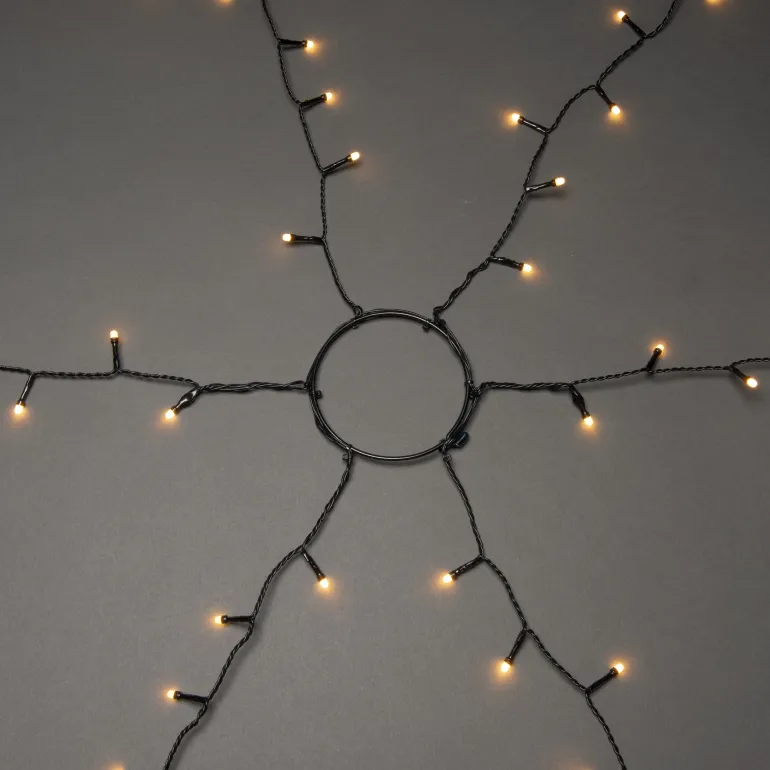 Konstsmide 6660-830 on valosarja joulukuuselle, jossa on 45×6 huurrettua LEDiä (väri amber). Musta johto, ajastin 8 h. 9V/IP44.