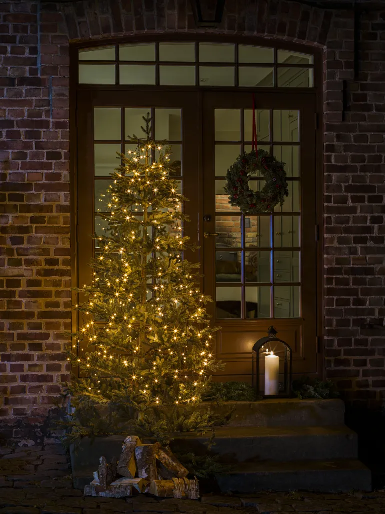 Konstsmide 6660-830 on valosarja joulukuuselle, jossa on 45×6 huurrettua LEDiä (väri amber). Musta johto, ajastin 8 h.