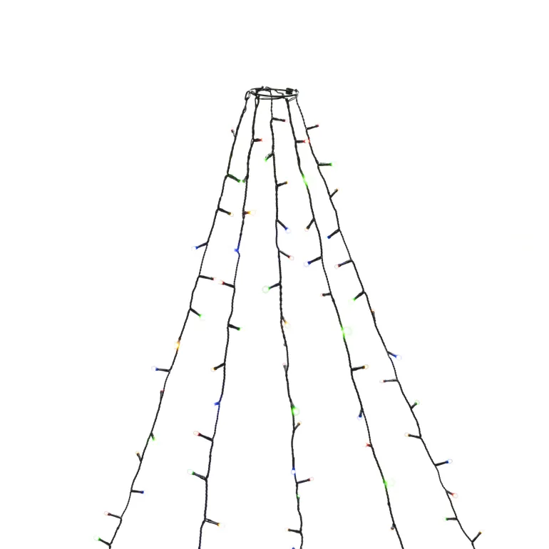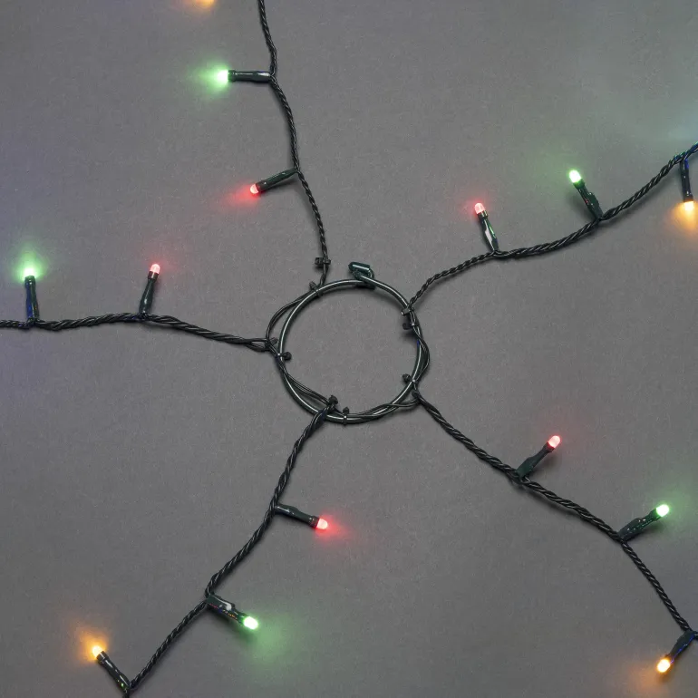 Konstsmide 6480-520 on valosarja joulukuuselle (180 cm), jossa on 30×5 moniväristä huurrettua LEDiä. Vihreä johto, 14V/IP20.
