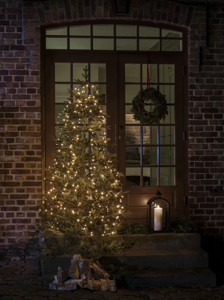 Konstsmide 6660-130 on valosarja joulukuuselle, jossa on 45×6 huurrettua lämpimän valkoista LEDiä. Musta johto, ajastin 8 h.
