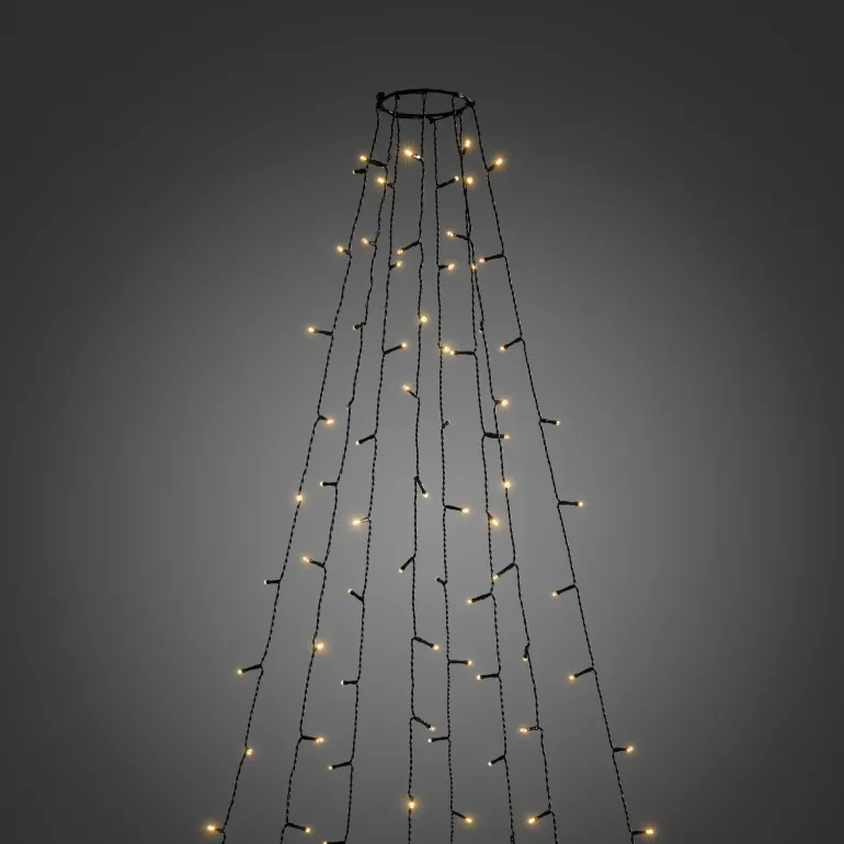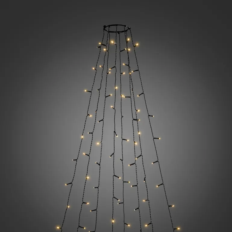 Konstsmide 6520-870 on valosarja joulukuuselle (240 cm), jossa on 8×30 amber-väristä LEDiä. Mahdollisuus ohjaukseen sovelluksella. Musta johto. 24V/IP44.
