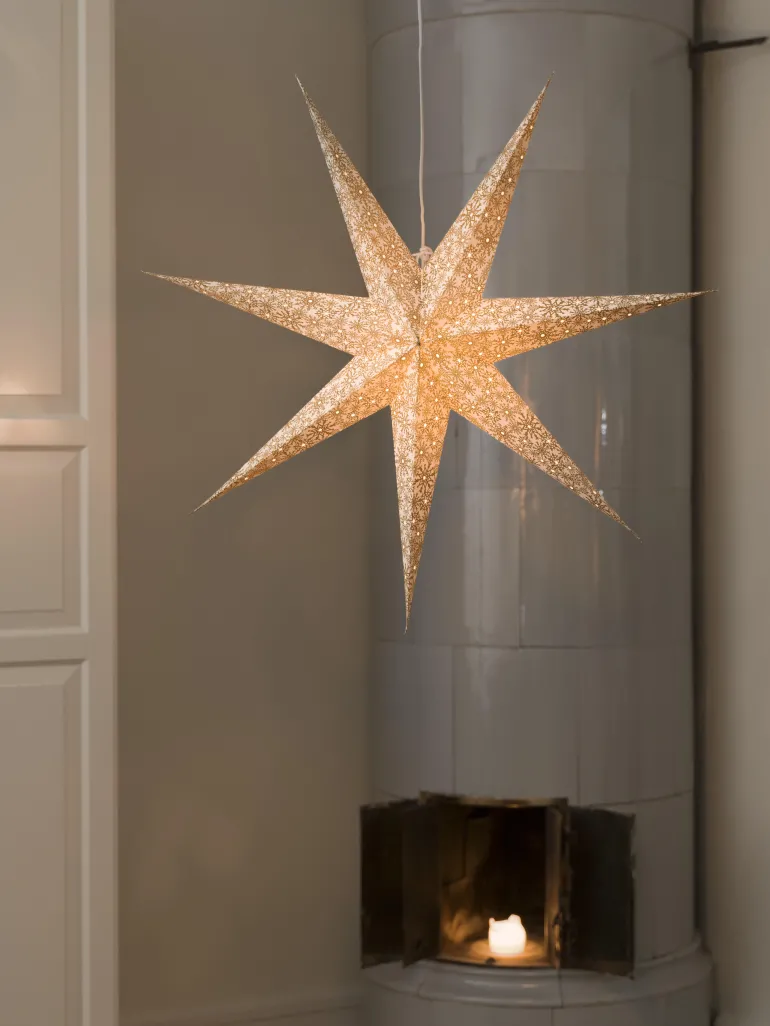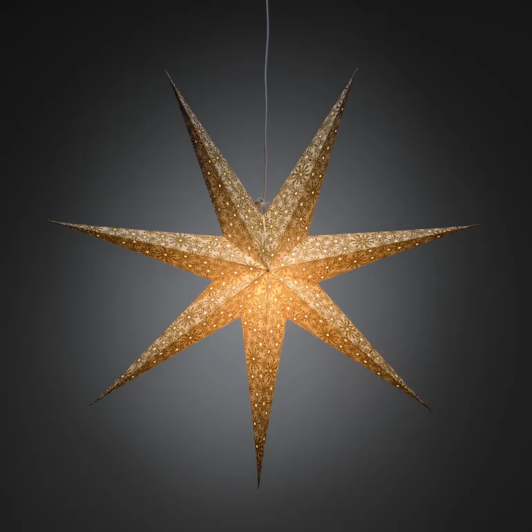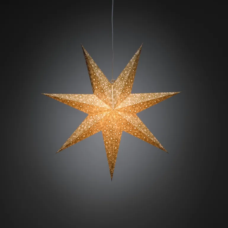 Konstsmide 2912-280 on paperitähti 78 cm. Väri valkoinen/kulta, sisältää johdon (ilman valonlähdettä).